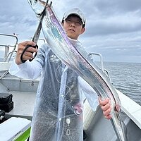 2024年6月29日 (土) 太刀魚 太刀魚便です。 6月17日から久々の出船です。 情報なく心配しましたが太刀魚いました。最初は、ヒラの猛攻でお一人で4匹釣られた方も居られました。 次第に活性良くなりポツポツと釣れます。口を使っておりジグ・テンヤにヒットしています。 全体的に数は少なく釣れた方で10本位でF4~F5.5サイズが釣れました。