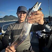 2024年9月14日 (土) 太刀魚 タチウオ便です 朝から小太刀スタートです。10本に1本良型サイズが釣れていました。 F5.5がMAXで釣れた方で44本の釣果です。 テンヤでもジグでも釣れています。 本日のご乗船ありがとうございました。