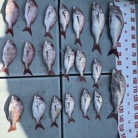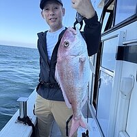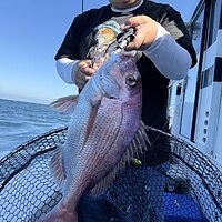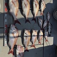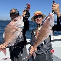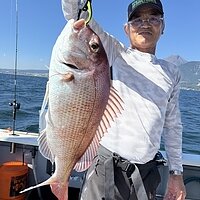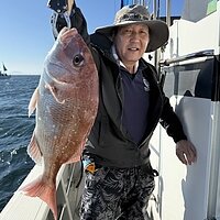 2025年10月12日 (日) 真鯛 真鯛便です。 今日も釣れています。釣れた方で5~6枚の釣果で60サイズが揃いました。 ポイント次第では、小型真鯛多かったです。ナブラあり10キロオーバーのブリも釣れました。 本日のご乗船ありがとうございました。 明日も大型真鯛狙います! 真鯛70サイズ・・・乗船料半額! 真鯛80サイズ・・・乗船料無料です。