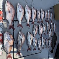 2025年10月13日 (月) 真鯛 真鯛便です。 潮流れず厳しい釣果です。 釣れた方で60サイズ頭に9枚と釣られていました。 全体で24枚の釣果です。 もう少し釣れてほしいです。ご乗船ありがとうございました。