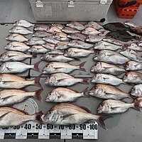 2025年11月2日 (日) 真鯛 真鯛便です。 朝から竿が曲がり沖上がりまで釣れ続けました。 釣果カウントした数で55枚ですが恐らく60枚以上は釣れていたと思います。 沖上がり30分前は、生簀の真鯛を占めておりその間も釣れ続けていました。