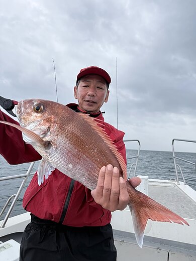 2025年11月9日 (日) 真鯛 真鯛便です。 今日は、時化と悪天予報でお客さん少人数で出船です。 殆どの方が、タイラバて挑戦されて60頭に良型ラッシュがあり楽しめました。 少し雨が降りましたが最後までありがとうございました。