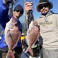 2025年11月23日 (日) 真鯛 真鯛便です。 昨日より厳しい釣果になりました。 水温が下がった為かタイラバに反応しません。結構、底付近でウロウロしているようでテンヤや海老ラバーで釣れています。 今年から活エビ1,000円にて販売していますので予約時にお申し付けください。 釣果は、釣れた方で10枚・8枚と釣れています。