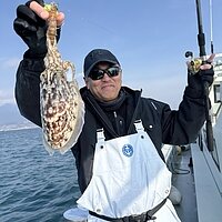 2026年3月7日 (土) 甲イカ 甲イカ便です。 今日は、関東で甲イカのテンヤ釣りを楽しんでおられる方に乗船していただきました。 東京湾での甲イカテンヤ釣りは、シャコを巻いて釣るそうですが、今回は贅沢に活車エビで挑戦されていました。 釣り方は、大きくシャクリその後数秒かけて落とし小さくシャクリあたりを待つ感じで釣られていました。 今日は、潮流早く潮止まりの地合いで数稼げました。 釣果7ハイですが潮が合えば楽しい釣りになりそうです。