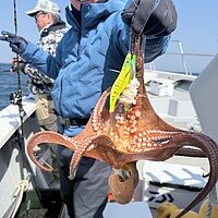 2026年3月10日 (火) マダコ マダコ便です。 少し時化ており掛かりが悪い感じでした。最大で1キロ弱のサイズで小さめが殆どでした。 釣れた方で、7タコ・5タコ・4タコの順です。全員安打で有難うございます。 餌木に餌を付けたりキラキラアピールしたりと皆さん工夫されています。 多数のアピールをされる場合は少し重めの鉛をご使用ください(*^^)v基本の鉛は40号となります。 恒例の手作りお弁当600円にて販売中です。今日は、レンコンハンバーグ・チキンライス・中華・生姜焼きのおにぎらずでした。