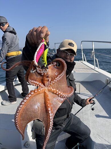 2026年3月12日 (木) マダコ マダコ便です。 恒例のチャーター便でご利用いただきました。数名の方がマダコ初挑戦です。 開始1時間で全員安打達成でした。 釣果は、2.5キロ頭に62タコの釣果です。トップ13タコに12タコ・10タコと続きました。 小ダコ中心ですが、ひと潮毎にサイズアップすると思います。 ご乗船ありがとうございました。