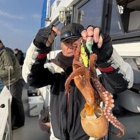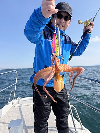 2026年3月21日 (土) マダコ マダコ便です。 中潮1日目で潮流れ心配しましたが朝から良い流れで釣れました。釣れなかった方も居られましたが、釣れた方から500g前後のサイズですが、6タコ・5タコ・4タコ3名の釣果で1.5㎏が最大でした。又、手作り弁当おにぎらずご注文有難うございました。 明日以降もマダコ出船しますので宜しくお願いします。