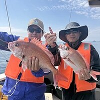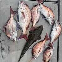2026年3月22日 (日) 真鯛 マダイ便です。 今日は少人数で出船しました。上潮期待しましたが中々釣れず。 移動繰り返し時合で4人同時にヒットし40サイズに30サイズと釣れましたが続かず。 針外れも数回あり何とか釣れて安堵です。 ご乗船ありがとうございました。
