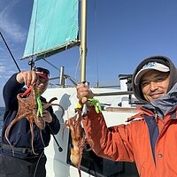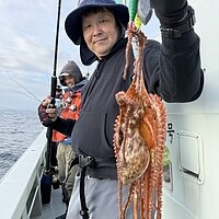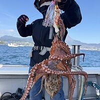 2026年4月11日 (土) マダコ マダコ便です。 今日の釣果は、2艘で96タコの釣果で3㎏と2.8㎏が大きいサイズです。釣れた方から8・7.6タコです。 又、今日は3名様の竿が折れました。先調子の太刀魚テンヤの竿で大丈夫です。予備があればご準備ください。 本日のご乗船ありがとうございました。